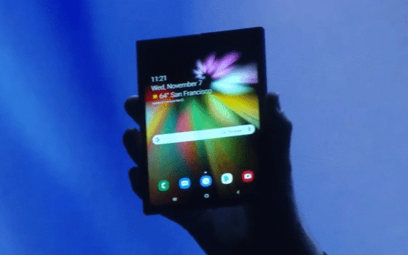 Samsung 在剛舉行的 SDC 開發人會議中,終於正式展示摺屏手機,他們將這摺屏技術稱為「 Infinity Flex (無限屈曲)」。展示出來的原型機有兩片屏幕,摺起來時,外側是一個 4.58 吋 Super AMOLED 封面屏幕;而攤開時,內側就是一個 7.3 吋 Super AMOLED 主屏幕。 Samsung 稱可以在數個月內開始量產。